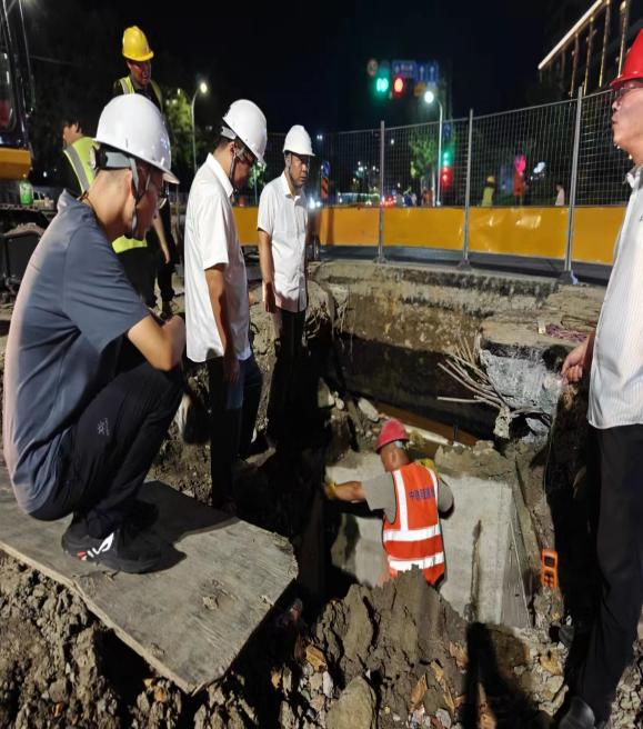 割接前12小时,利用上下游泵站进行水量调度,降低水位;割接工作安排在凌晨后用水量较小时段,气囊封堵后采用临时水泵向下游排水,保障割接工作顺利进行;并使用槽罐车应急待命,防止出现满溢情况。经过9个小时连夜鏖战,完成割接任务。