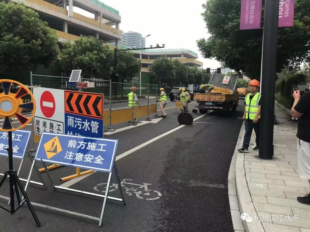 污水管网抢修应急演练模拟亚运竞赛场馆附近路面塌陷造成排水管线受损。抢修人员到达沉降现场后立即做好道路安全维护,并利用CCTV检测工具对周围的排水管线进行排查,确认是DN400污水管道存在破损。抢修人员在现场迅速制定方案,并开挖路面实施抢修,20分钟后完成施工。